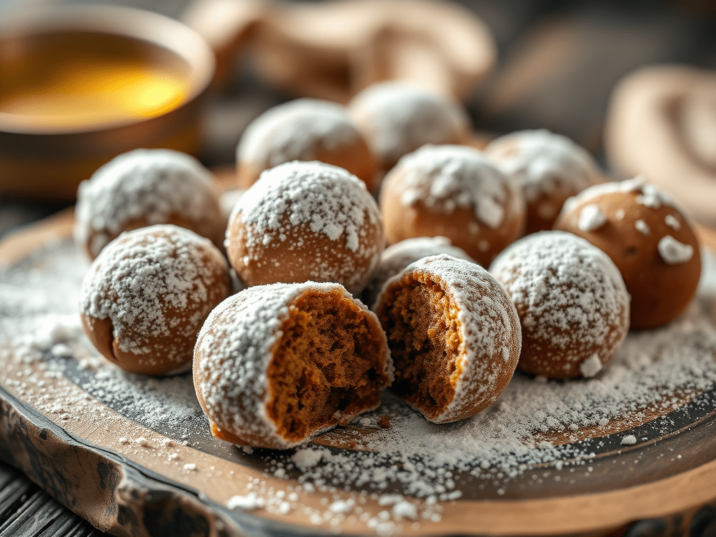 Crushed biscuits, chopped nuts, cocoa, and powdered sugar form the base of these decadent little bites, brought together with dark rum and honey for a smooth, truffle-like texture. A hint of cinnamon or espresso adds depth, while the coating—whether powdered sugar, coconut, or crushed nuts—adds a final flourish. No baking required, just mix, roll, and chill. Perfect for gifting, party platters, or sneaky indulgence straight from the fridge, these rum balls are rich, nostalgic, and endlessly customizable.