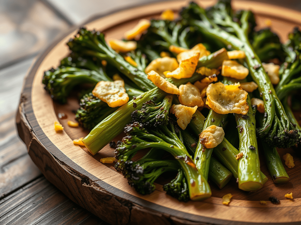 Miso-Tahini Glaze Brush broccolini with a warm miso-tahini sauce post-char. Garnish with furikake and microgreens for a Japanese fusion feel.