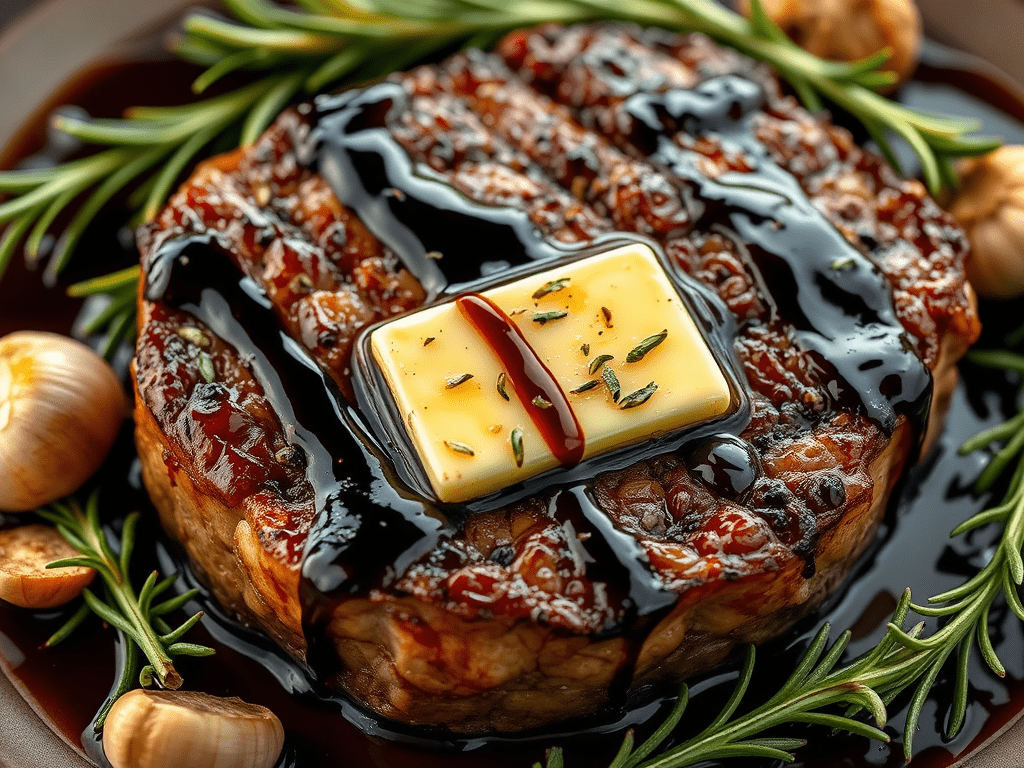 Miso-Ginger Butter & Ponzu Drizzle Swap rosemary-garlic butter for miso, ginger, and scallion-infused butter. Replace balsamic glaze with ponzu reduction. Garnish with shiso or sesame microgreens.
