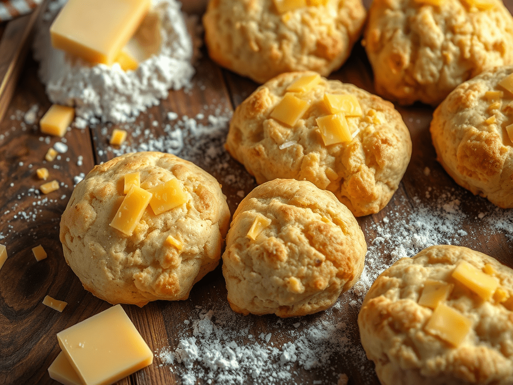 Golden, fluffy, and irresistibly savory, these cheese scones are the perfect balance of comfort and indulgence. A simple mix of self‑raising flour, butter, and mature cheddar creates a dough that bakes into light, tender rounds with a rich, cheesy aroma. The reserved sprinkle of cheddar on top ensures a crisp, golden crust that contrasts beautifully with the soft interior.